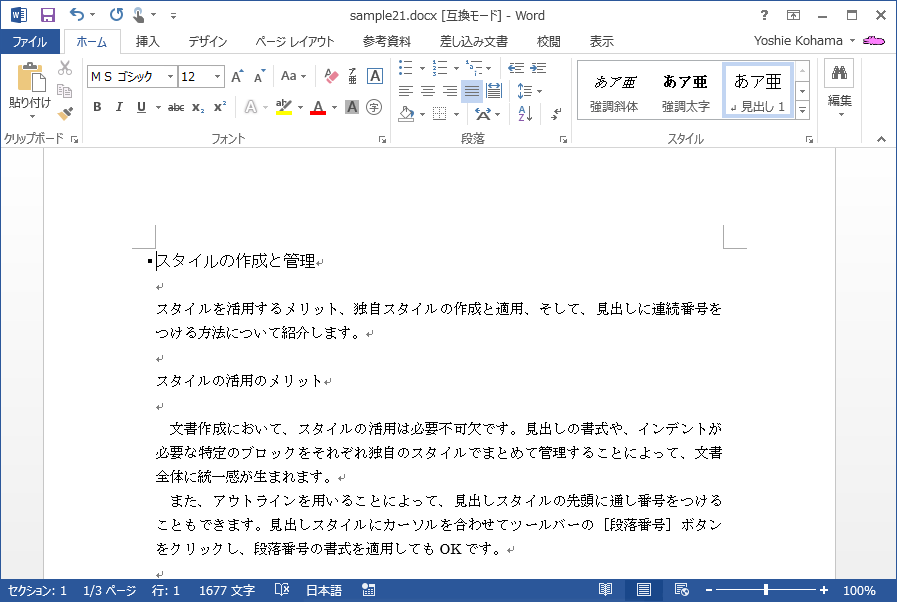 見出しは見出しスタイルにしておくことで、効率のよい、見栄えの統一した美しい文書を作ることができます。