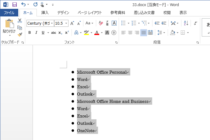 - リスト全体を選択して[ホーム]タブの[段落]グループ右下のダイアログボックス起動ツールをクリックします。