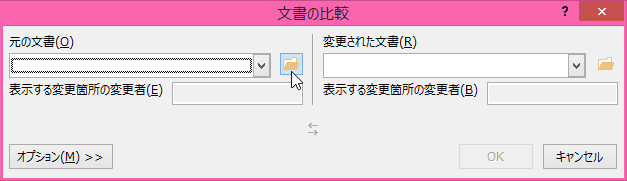 - [オプション]をクリックして、文書内で比較する箇所についてオプションを選択します。[変更箇所の表示]で、文字や単語レベルの変更を表示するかどうか選択します。