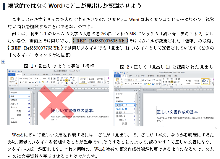 相互参照は、「図2を参照」などのように、文書内の他の場所にある項目を参照します。相互参照は、見出し、脚注、ブックマーク、図表番号、番号のついた段落などについて作成できます。