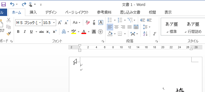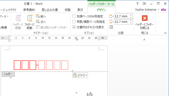- Wordに切り替えて、ヘッダーとフッター編集画面に切り替えるために余白部分をダブルクリックします。