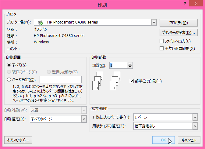 - [印刷]ダイアログボックスの[OK]ボタンをクリックします。