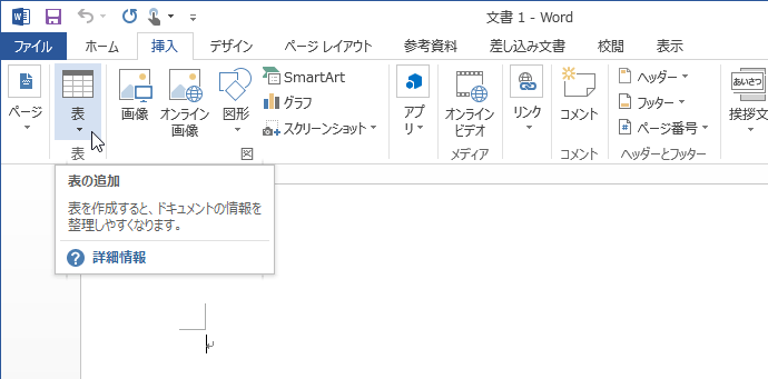 - [挿入]タブの[表]をクリックします。