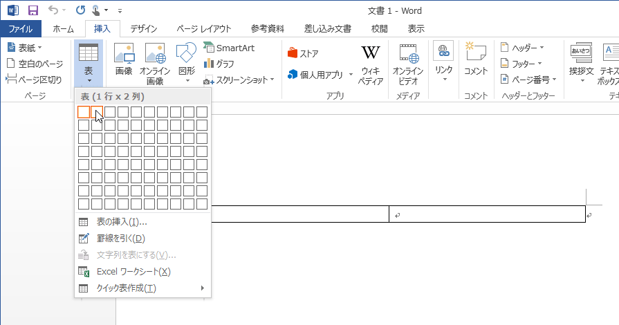 - 2列の表を挿入します。