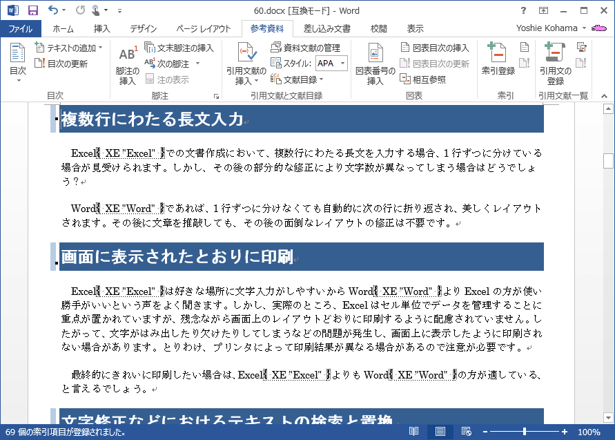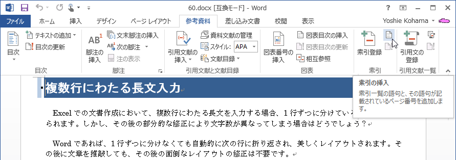 索引登録ファイルを作成したら、対象となる文書にそのファイルを使って索引を自動登録します。