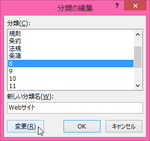 8から16までは予備の分類で、名前を変更して使用します。ここでは[8]を選択し、新しい分類名を入力して[変更]ボタンをクリックします。