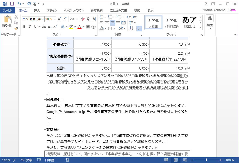 - [ホーム]タブの[編集記号の表示/非表示]をクリックして、TAフィールドを表示しておきます。