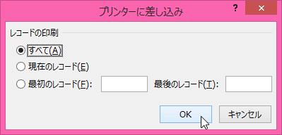 - [プリンタに差し込み]ダイアログボックスが表示されたら[すべて]を選択して[OK]ボタンをクリックします。