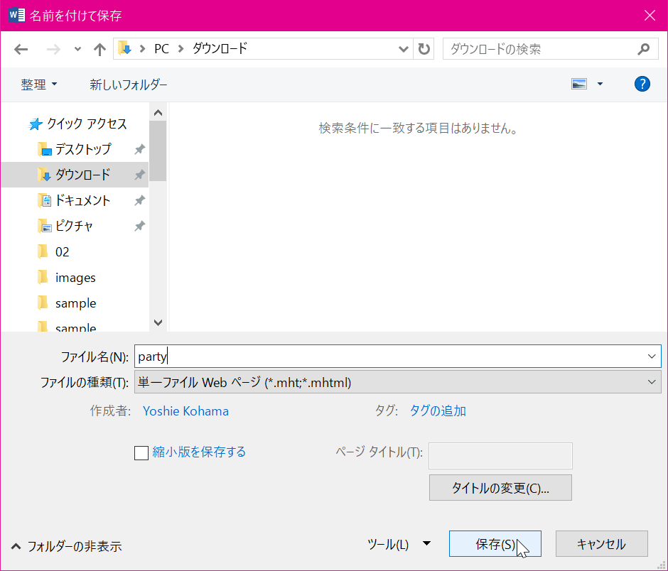 単一ファイルWebページ形式で保存