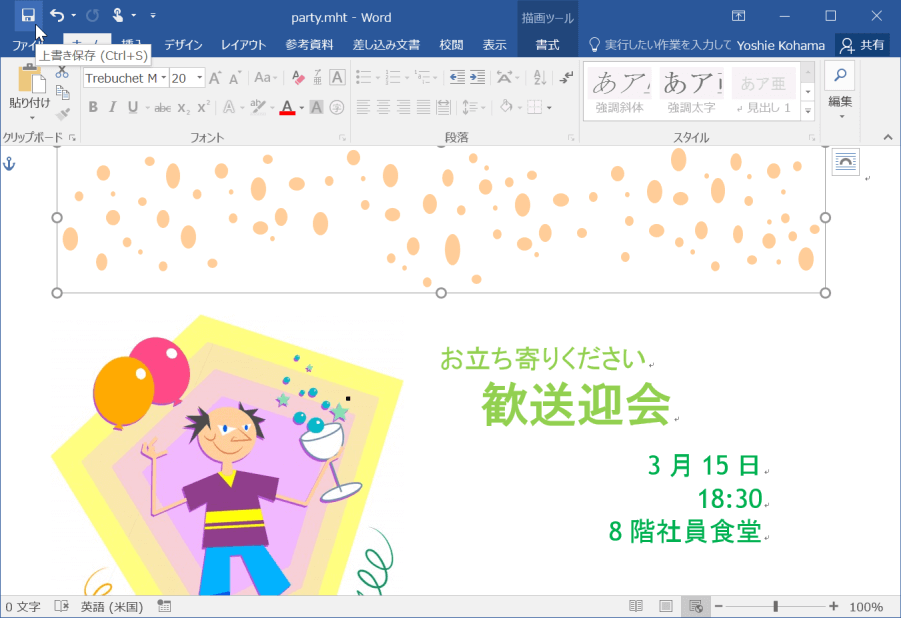 - レイアウトを整えて、上書き保存します。