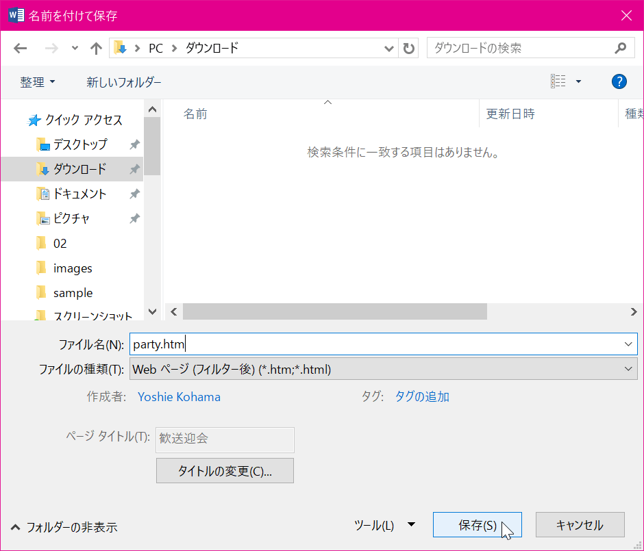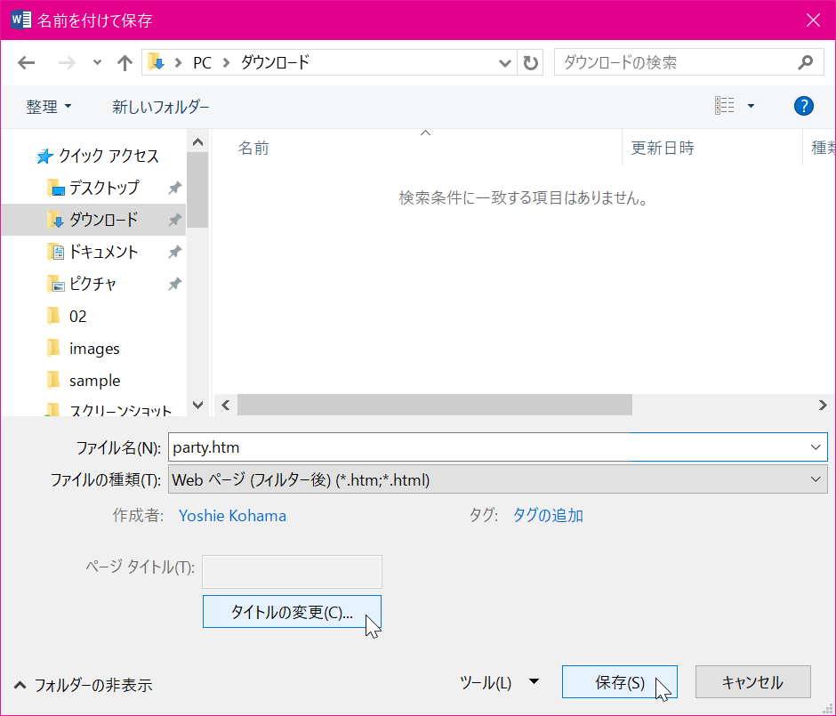 - Webページ (フィルター後) (*.htm; *.html)