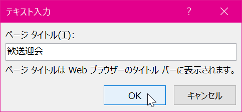 - ページタイトルを入力して[OK]ボタンをクリックします。