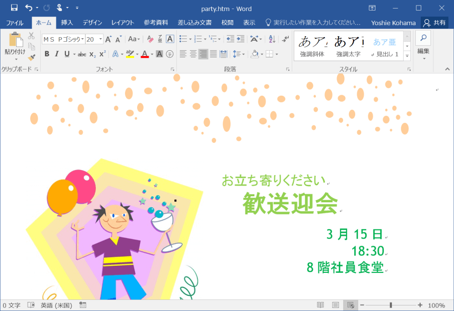 文書(*.docx)- Word文書形式で保存します