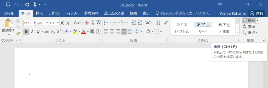 - [編集]グループの[検索]をクリックします。