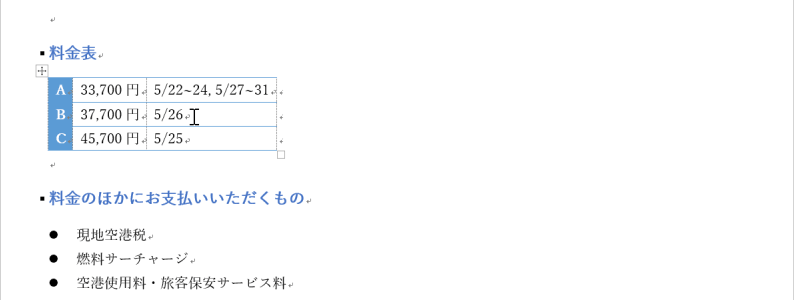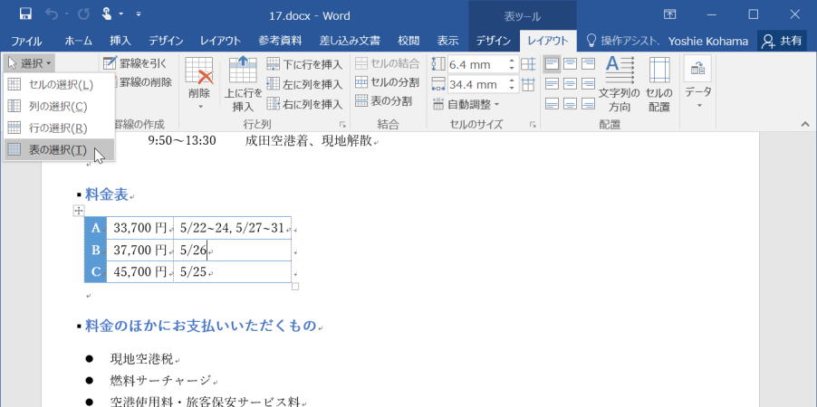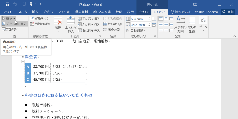 - 表全体を選択することができました。
