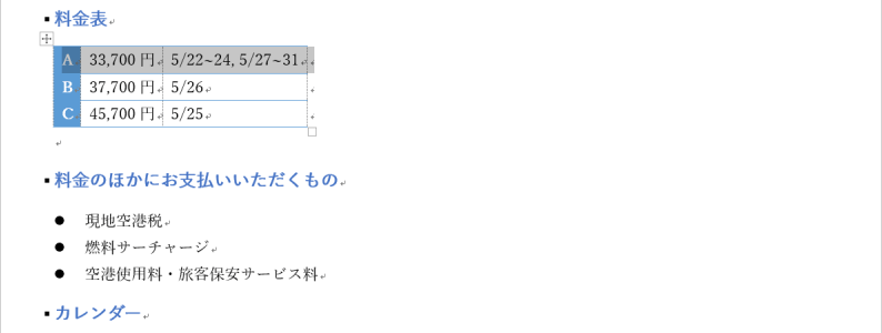 Word 2016で行を選択するには、対象となる行の左側にマウスポインターを移動してクリックし、列を選択するには、対象となる列の上側にマウスポインターを移動してクリックします。離れた行や列を選択する場合は、Ctrlキーを押しながらクリックしていきます。