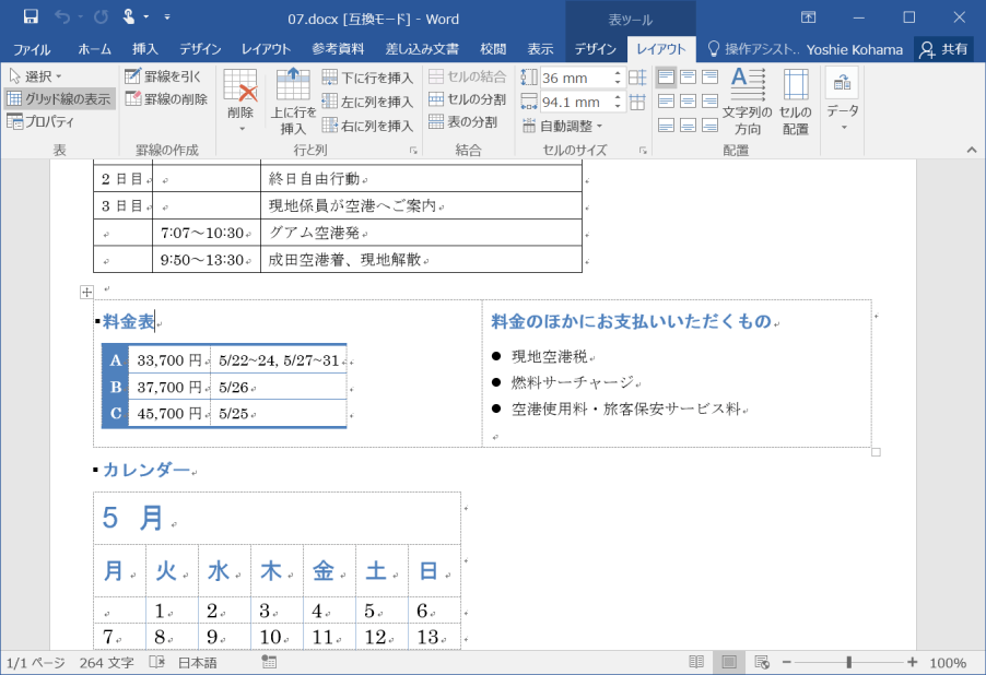 - 任意の表内にカーソルを移動します。