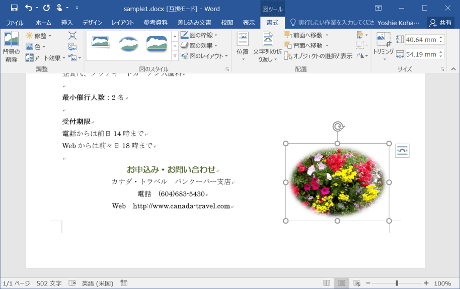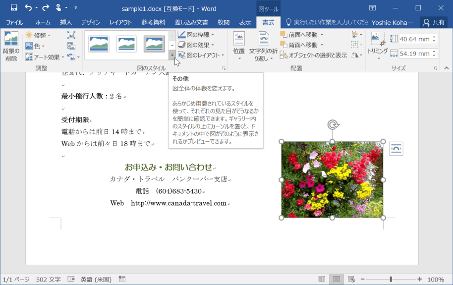 - [図ツール]の[書式]タブを開きます。