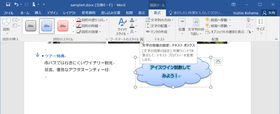 図形内の文字の効果を細かく設定するには