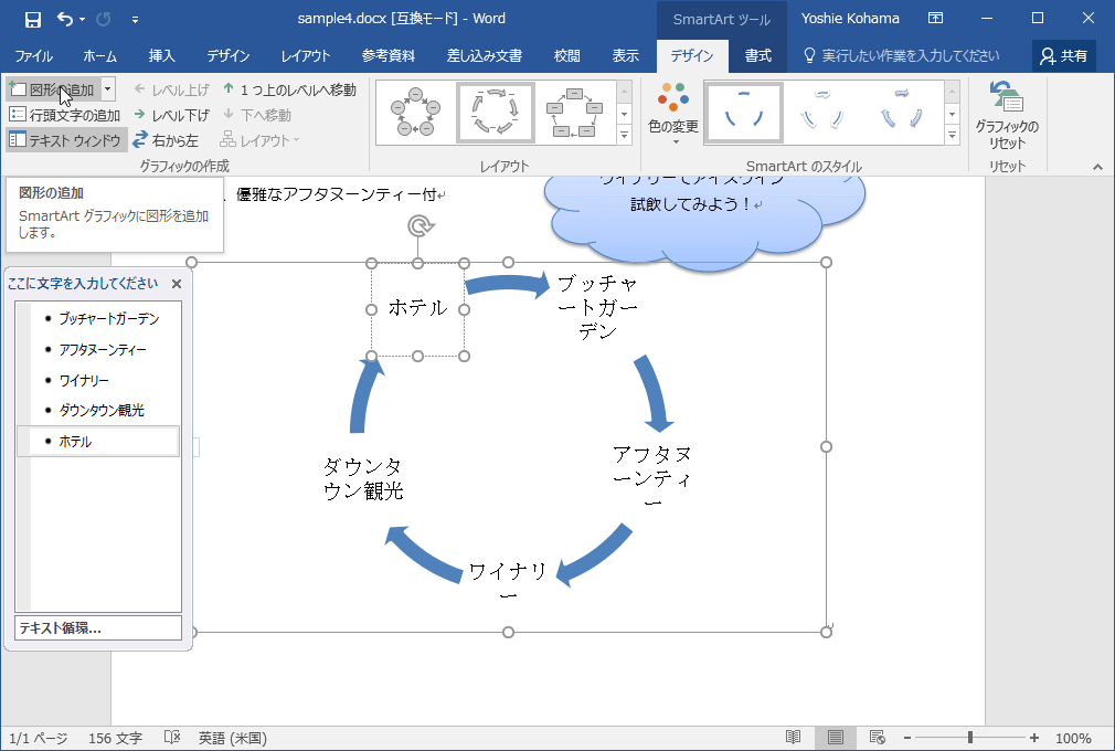 SmartArtグラフィックに図形を追加するには