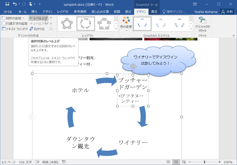 SmartArtグラフィックの選択項目のレベルを操作するには