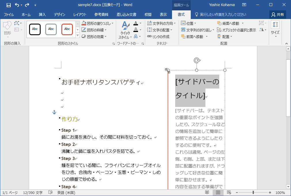 テキストボックスギャラリーから挿入