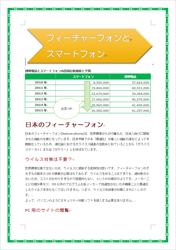 - [デザイン]タブを開き、[ページの背景]グループの[ページ罫線]を選択します。