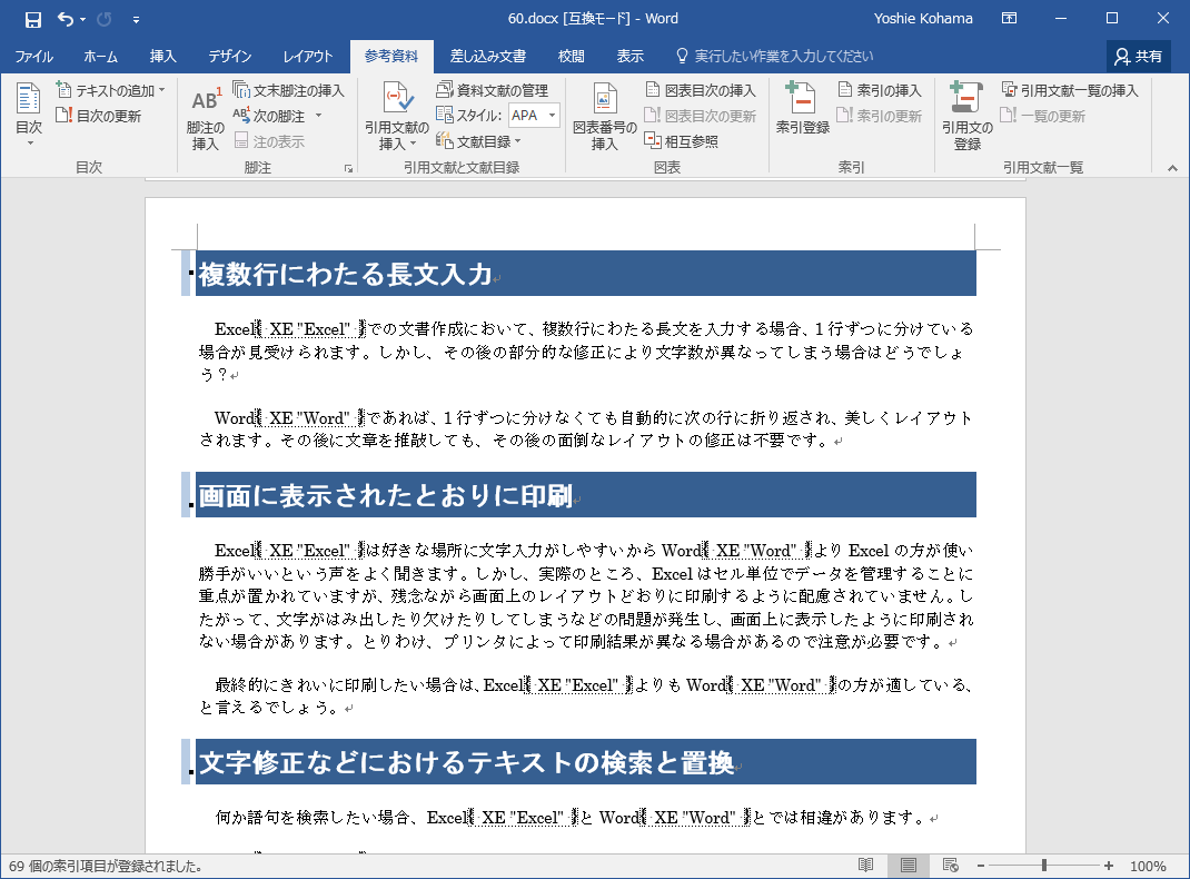 索引登録ファイルを作成したら、対象となる文書にそのファイルを使って索引を自動登録します。