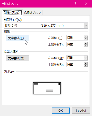 - [封筒オプション]の[OK]ボタンで閉じます。