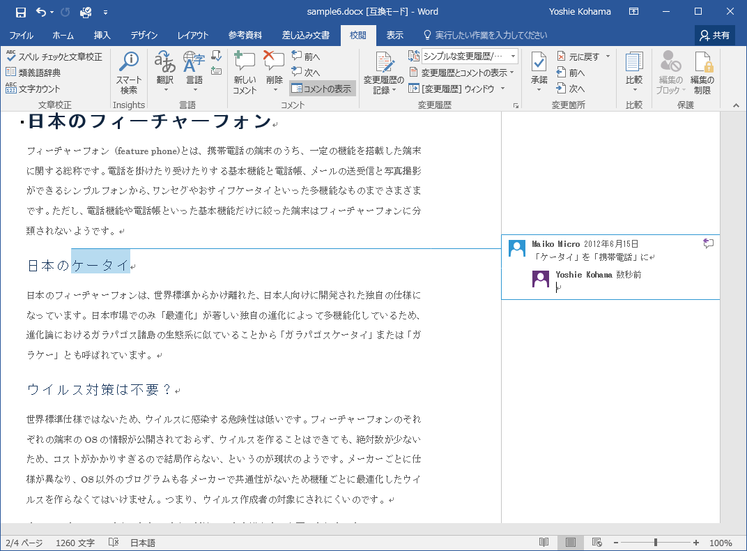 コメントの挿入と編集