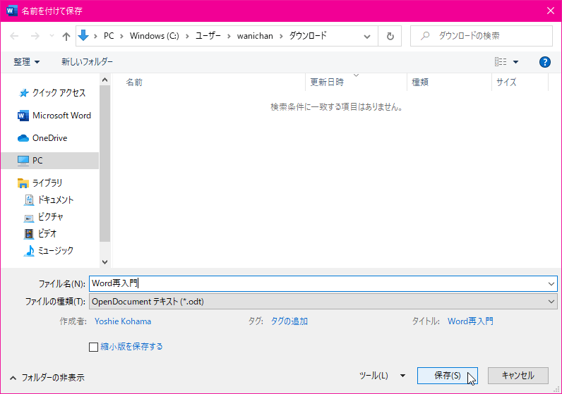 OpenDocument テキスト(*.odt)- OpenDocument テキスト形式で保存します