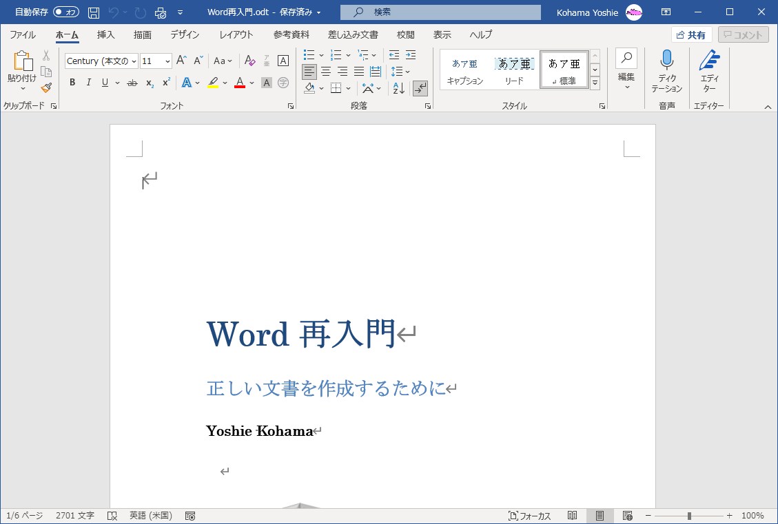 - OpenDocumentテキスト形式でファイルが保存されました。