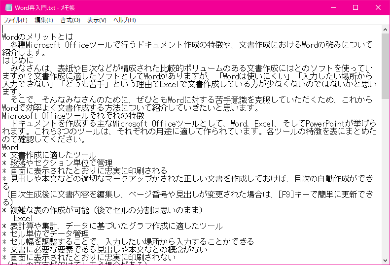 メモ帳でも開けるように、テキストファイル形式に変更することもできます。ただし、画像や図形などはもちろん、書式情報はすべて失われるので注意してください。