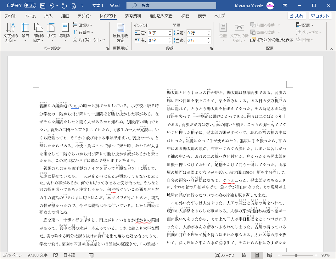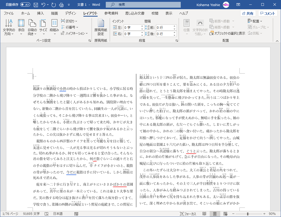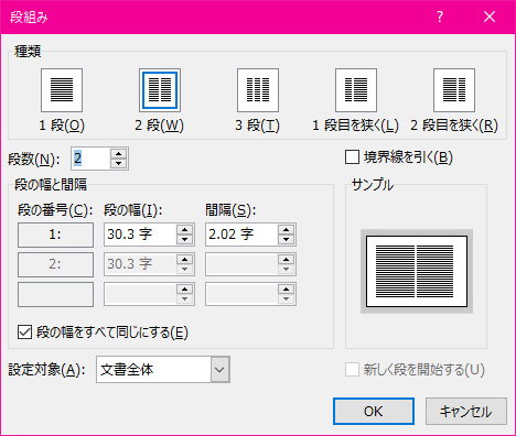 文書全体を段組みにするには