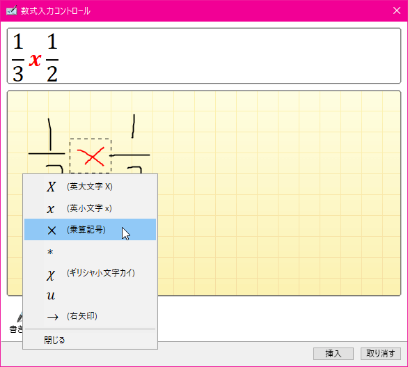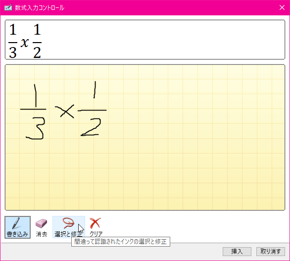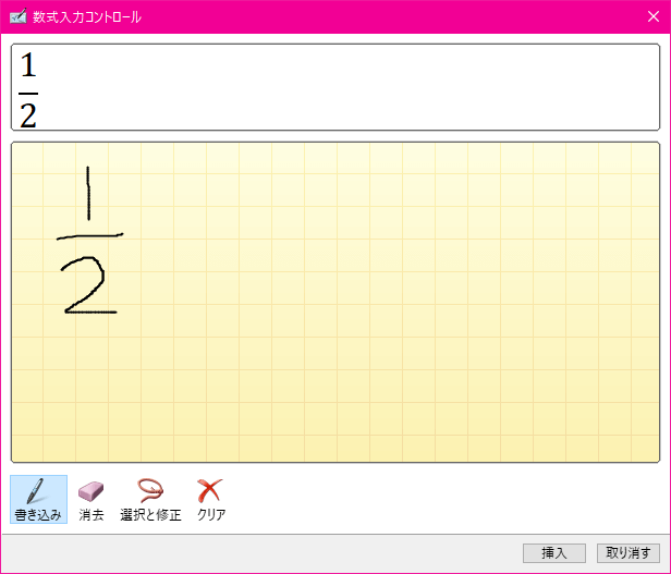 - 数式が書き終わったら[挿入]ボタンをクリックします。