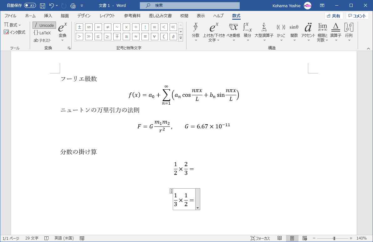 - 数式が挿入されました。