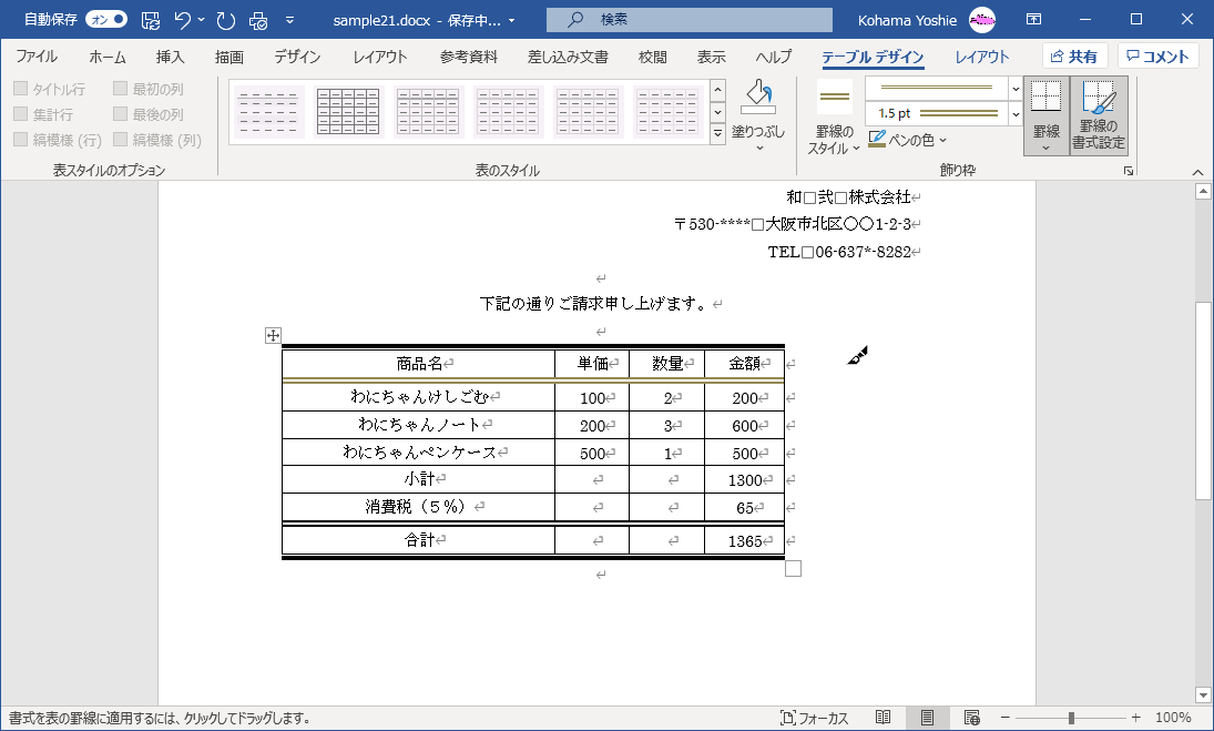 - 新しい罫線の色が適用されました。