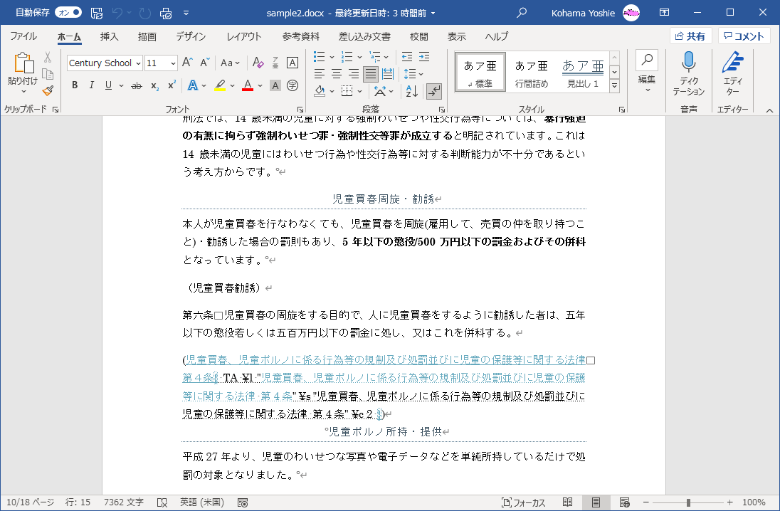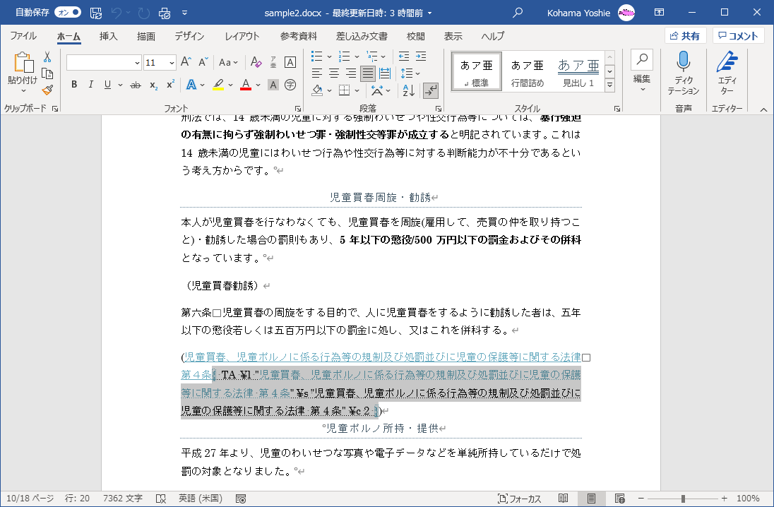 - 文書に正しいページ番号を付けるには、フィールドコードと隠し文字を非表示にする必要があります。 TA (引用文献登録)