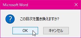 - [既存の目次を置き換えますか?]メッセージが表示されたら[OK]ボタンをクリックします。