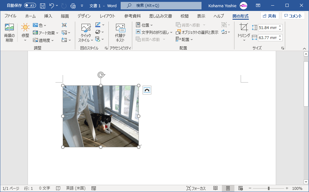 - 対象となる画像を選択して[図の形式]タブを開きます。