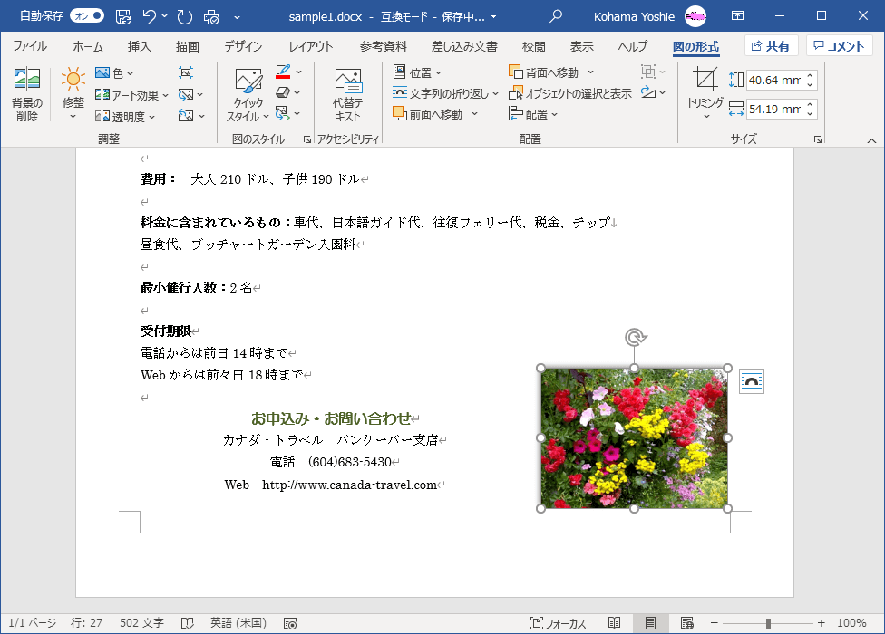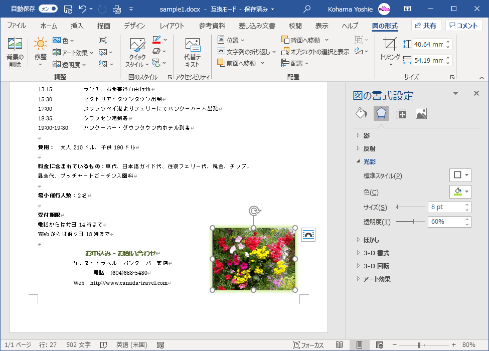 - 図を選択し、[図の形式]タブを開きます。