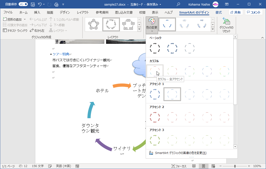 SmartArtの配色を変更するには
