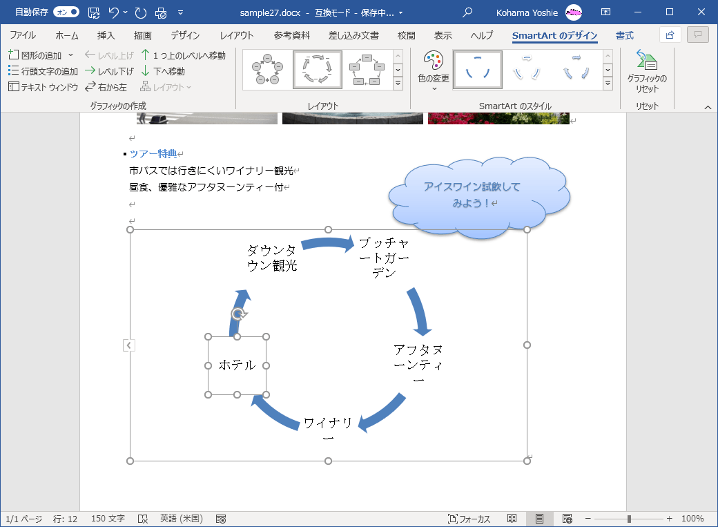 SmartArtの選択項目を移動するには