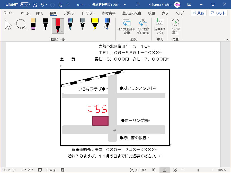 - フリーハンドで文字を描くと手書きオブジェクトが配置されます。