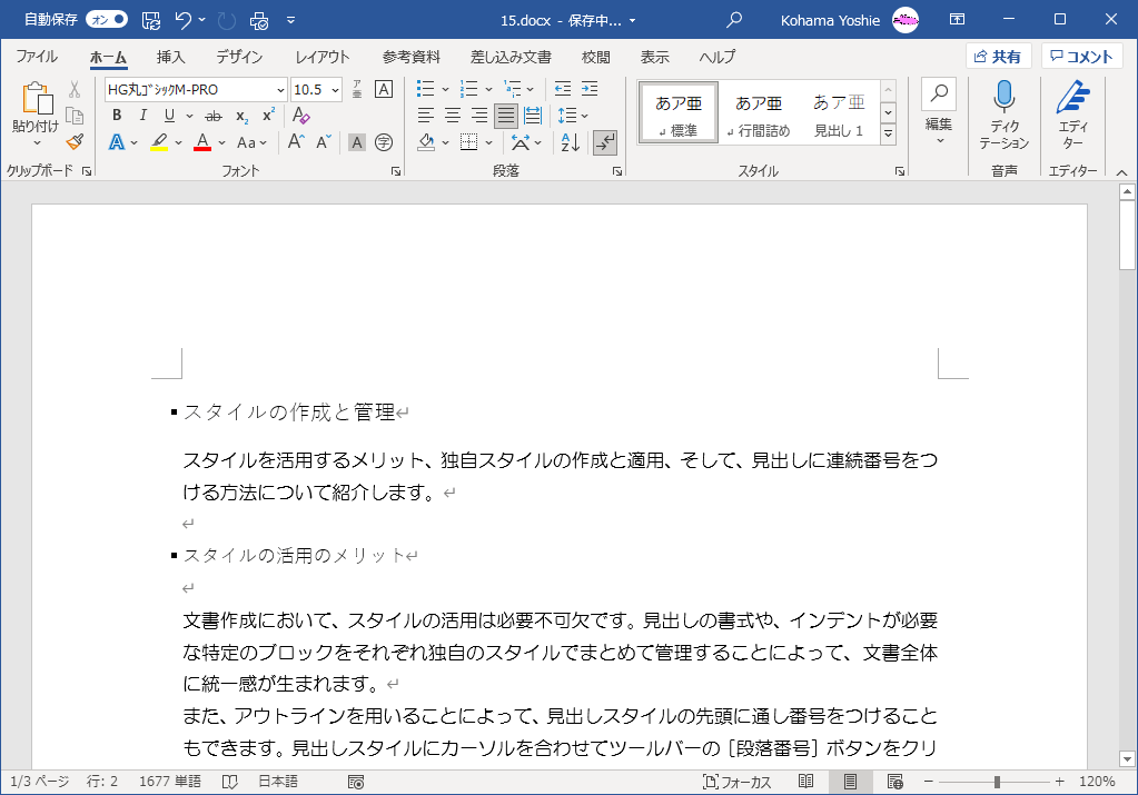 しかし、すべて丸ゴシック体に変えるために、すべて選択して[ホーム]タブの[フォント]ボックス一覧から「HG丸ゴシックM-PRO」を選択する方法は、あまり賢いやり方ではありません。