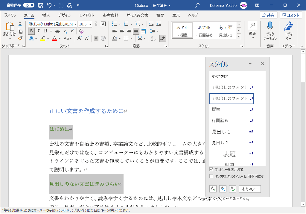 別に私は目次なんて作らないから別にいいじゃん、って思っている人もいるかもしれません。しかし、文書内でスタイルを統一することが重要で、スタイルを適切に管理することによって、美しいドキュメントを効率的に作成できるメリットが生まれます。