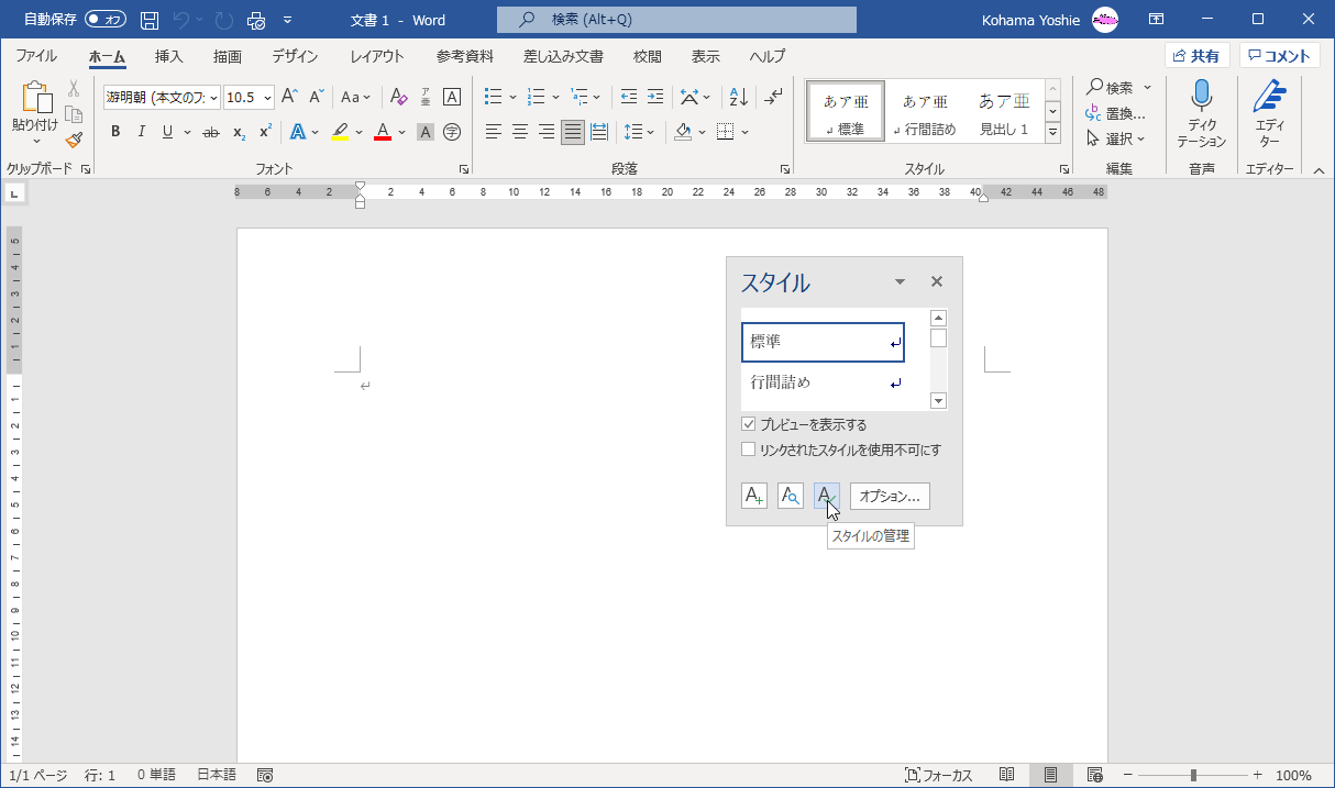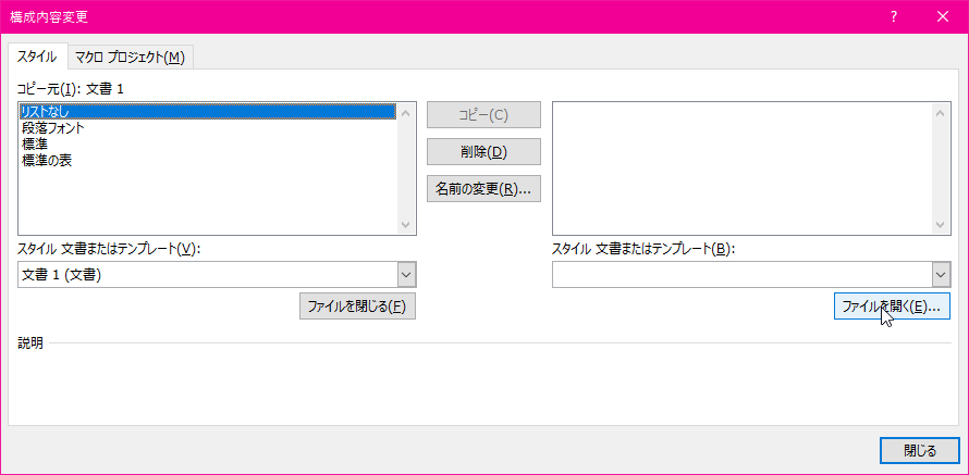既存のWord文書のスタイルを新規文書にインポートするには