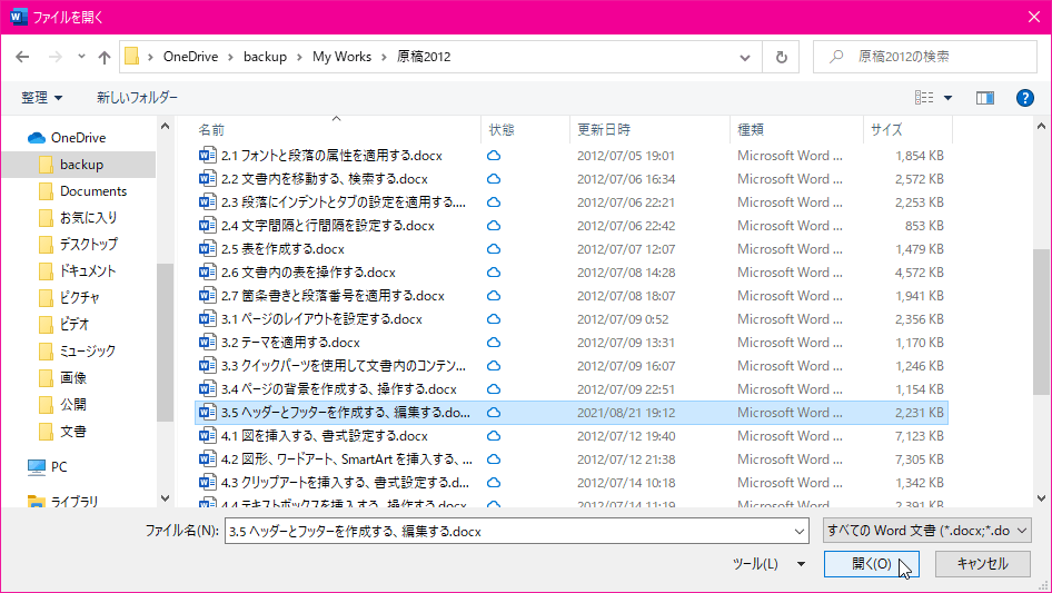 - [すべてのWord文書]を選択します。