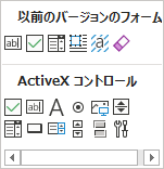 以前のバージョンのツール- ActiveX コントロールまたはフォーム コントロールを挿入します。