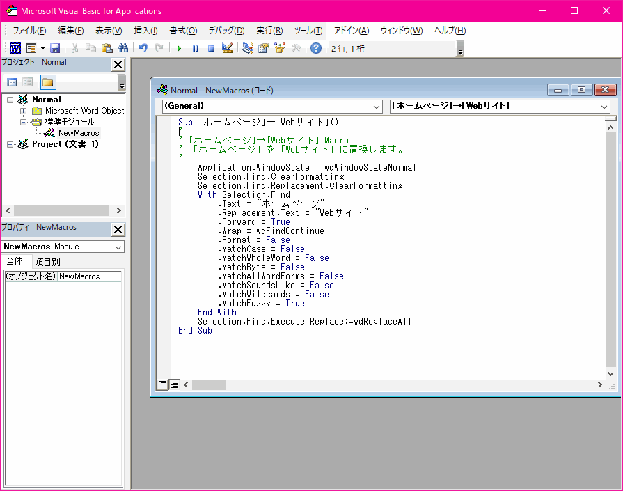 簡単なマクロを編集するには